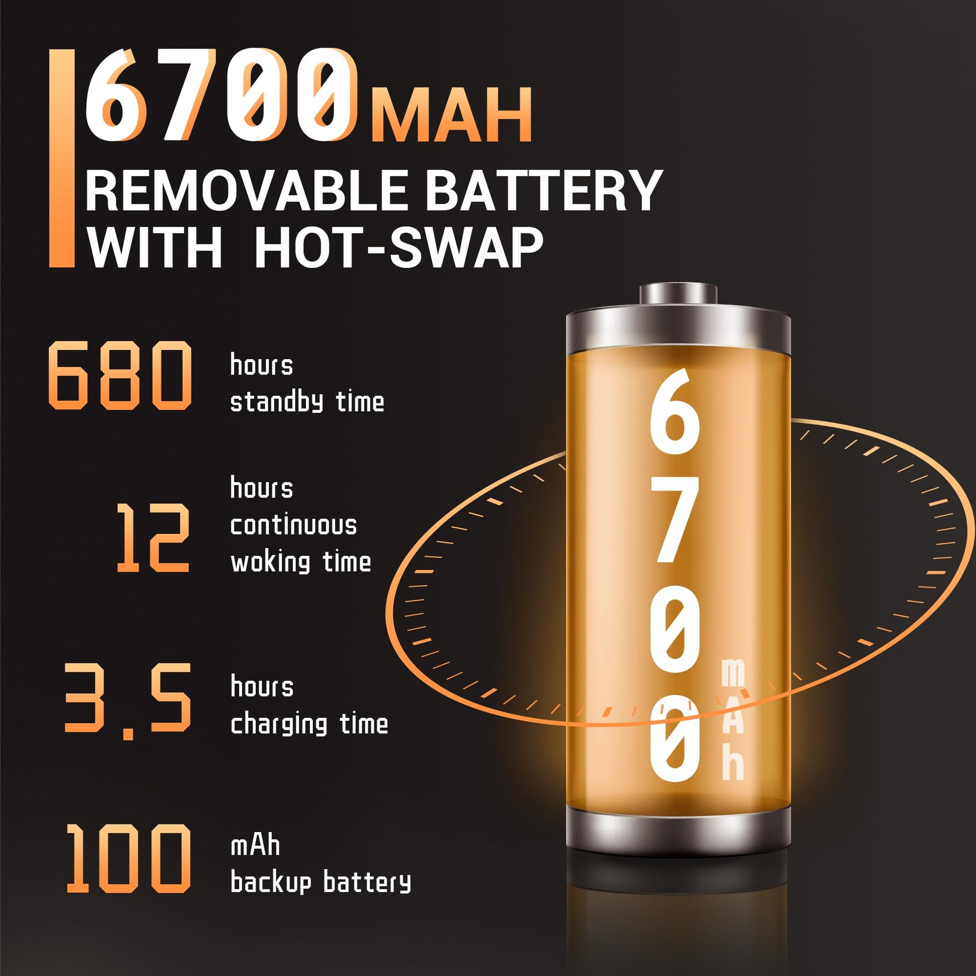 Battery | 6700 mAh removable main battery + Built in 100mAh backup battery |