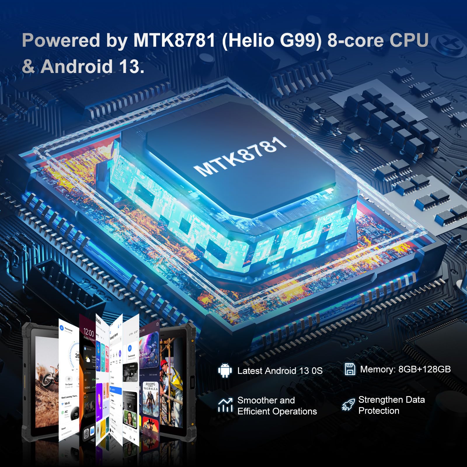 RUGLINE Rugged Tablet,10.1" Android 13 Industrial Three-Proof Tablet,8GB+128GB,700nit,1920 * 1200IPS, IP68 Military Waterproof Outdoors Industrial PC, MIL-STD-810G,WiFi,GPS,NFC,4G LTE